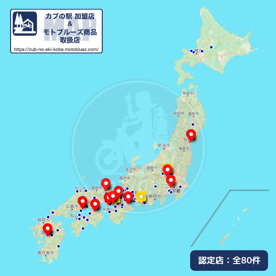 - MOTO BLUEZ(カブの駅こうべ):兵庫県神戸市垂水区平磯1-1-43
